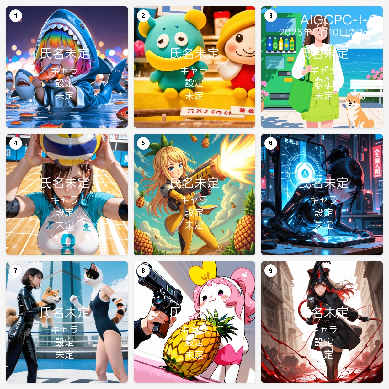 2025 年 11 月 10 日時点における、AIGCPC-I-O のキャラクター画像ランキングを作成しました。